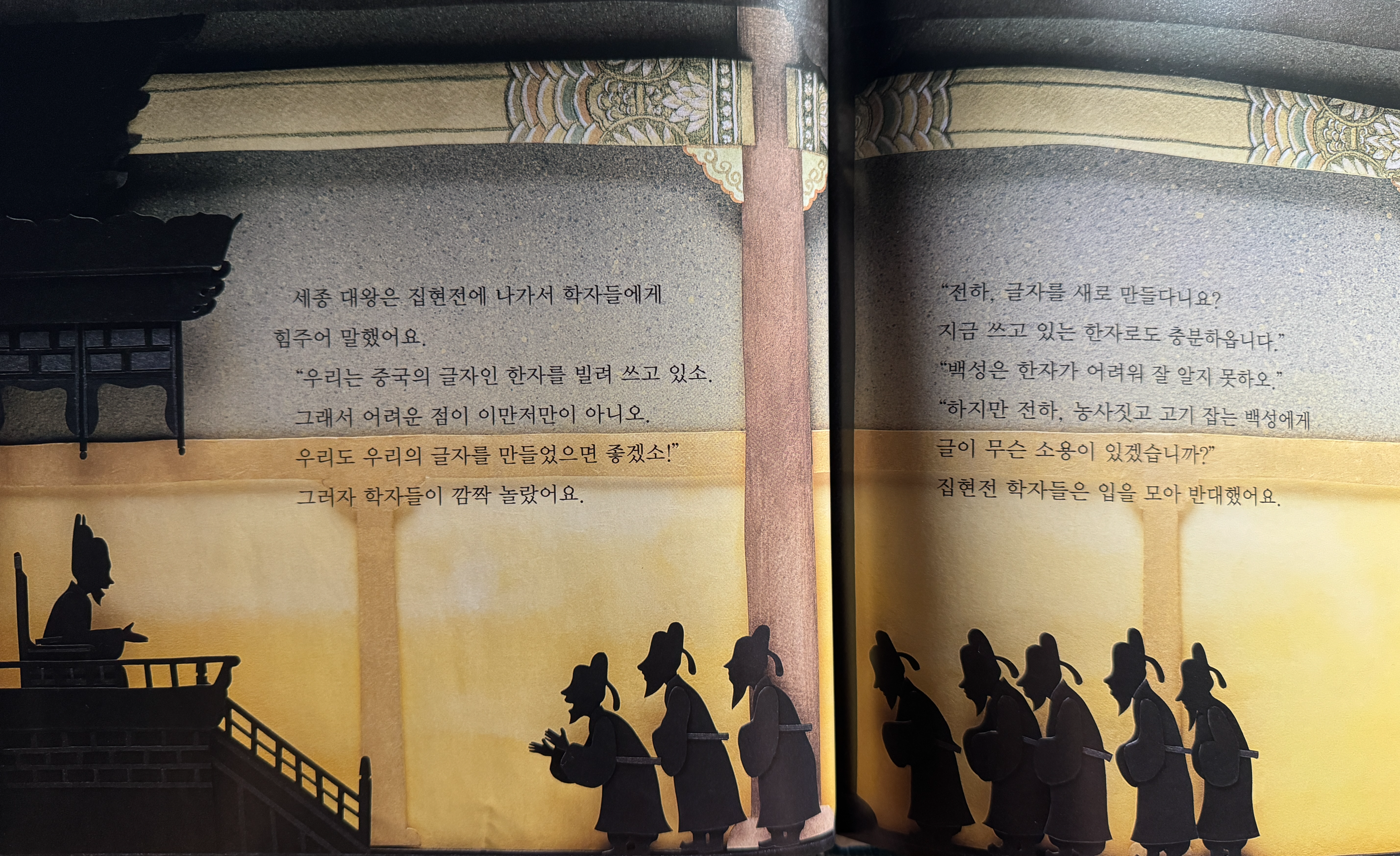"하지만, 전하, 농사짓고 고기 잡는 백성에게 글이 무슨 소용이 있겠습니까? 집현전 학자들은 입을 모아 반대했어요"